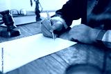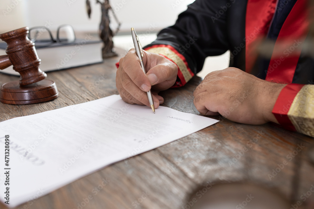 judge signing an contract paper at courthouse