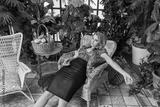 Strangled beautiful woman in a greenhouse. Simulation of the crime scene.....