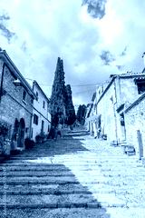 Pollenca on Mallorca stairs stairway to church El Calvari holidays vacation aerial photo portrait format in Spain