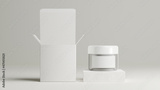 Minimal white cosmetic cream jar mockup on white background.