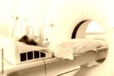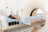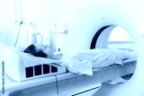 Medical CT or MRI Scan with a patient in the modern hospital laboratory. Interior of radiography department. Technologically advanced equipment in white room. Magnetic resonance diagnostics machine.
