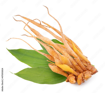 Finger root with leaf isolated on white background, Finger root or Krachai, Kaempferia herbal medicine on white With clipping path.