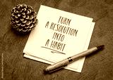 turn a resolution into a habit inspirational advice or reminder on a napkin, New Year resolutions, setting goals and personal development concept
