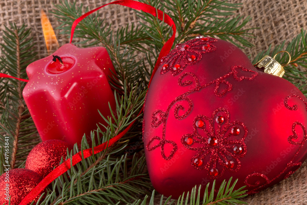 christmas decoration with red heart and candle