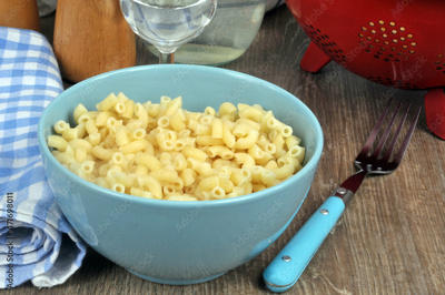 Pâtes servies dans un bol à côté d'une fourchette en gros plan