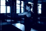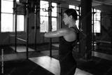 Young sporty woman stretching at the gym.