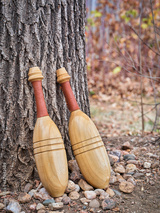 pair of Indian exercise clubs in backyard or park - functional fitness concept, clubs are particularly valuable for grip strength, shoulder work, and rotational core power