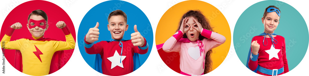 Brave superhero children showing gestures