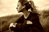 Sportswoman listening to music in countryside