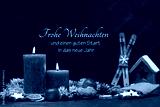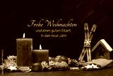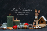 Weihnachtskarte: Weihnachtsdekoration mit dem Text Frohe Weihnachten und einen guten Start in das neue Jahr.