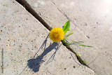 Plant growing with yellow flower grows through concrete cracking. Sprout of a plant makes the way through a crack asphalt. The concept of survival, ecology, globalization