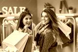 Group of happy friends during shopping