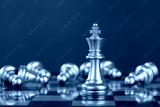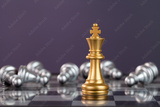 golden king chess and fallen silver pawn chess on chessboard.