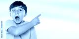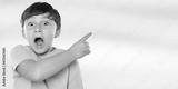 Child kid amazed surprised little boy pointing on ad advertising with copyspace copy space