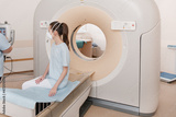 Medical CT or MRI Scan with a patient in the modern hospital laboratory. Interior of radiography department. Technologically advanced equipment in white room. Magnetic resonance diagnostics machine.