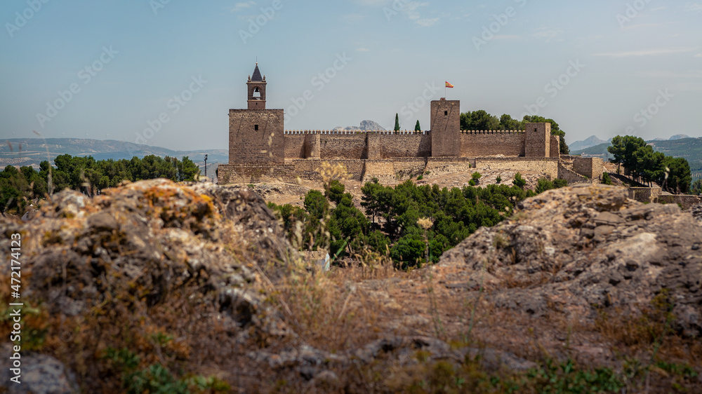 View of Alcazaba of Antequera is a Moorish fortress in Spain. Castle medieval
