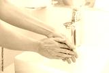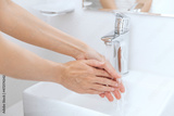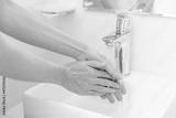 Washing hands under the flowing water tap. Hygiene concept hand detail. Washing hands rubbing with soap for corona virus prevention, hygiene to stop spreading corona virus in or public wash room.