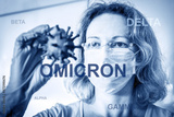Omicron COVID-19 variant poster, researcher looks at corona virus