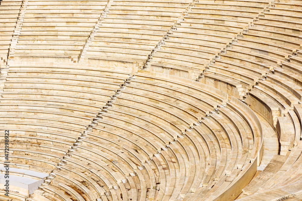 Theater seating at Acropolis foot, Athens, Greece. Detail of ancient Greek Odeon of Herodes Atticus.