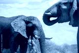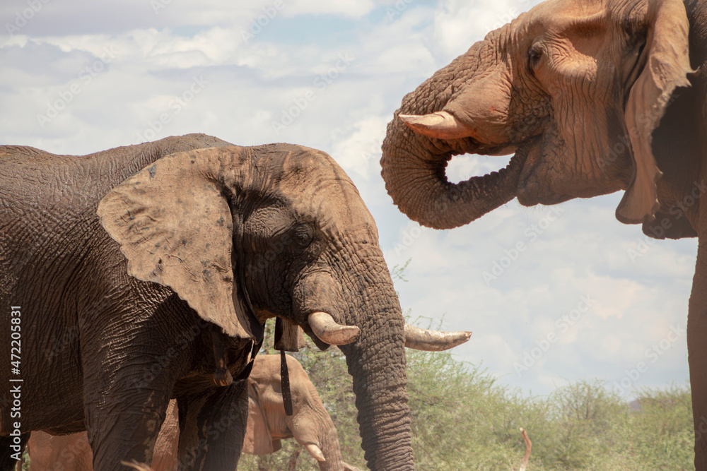 Two african elephants in the grasslands of Etosha National Park, Namibia.