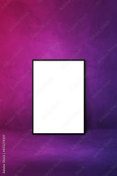 Black picture frame leaning on a purple wall