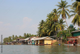 bungalows along the river mekong at khone island in laos