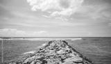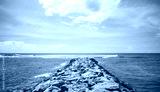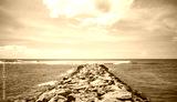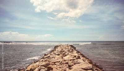 Rocky pier at sea on a sunny summer day, color toning applied, Sri Lanka.