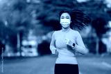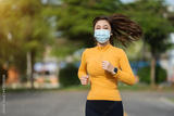 woman running with medical mask to protect Coronavirus(Covid-19) pandemic