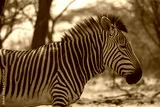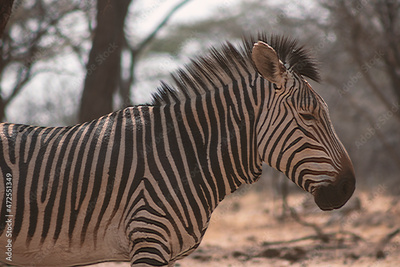 Wild african life. A lonely Namibian zebra standing in the middle of the savannah.