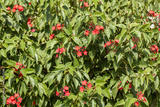 Green leaves and red flowers
