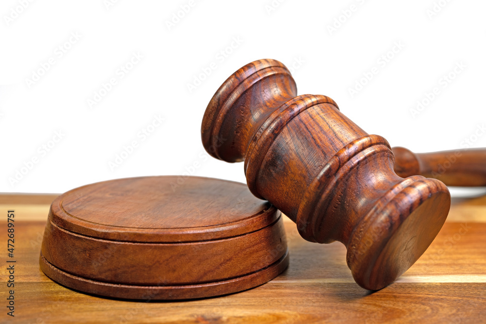 Richterhammer vor weißem Hintergrund, Nahaufnahme