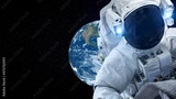 Astronaut spaceman do spacewalk while working for spaceflight mission at space station . Astronaut wear full spacesuit for operation . Elements of this image furnished by NASA space astronaut photos .