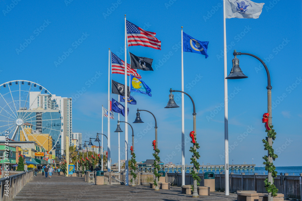The Boardwalk of Myrtle Beach on the Atlantic Ocean in South Carolina