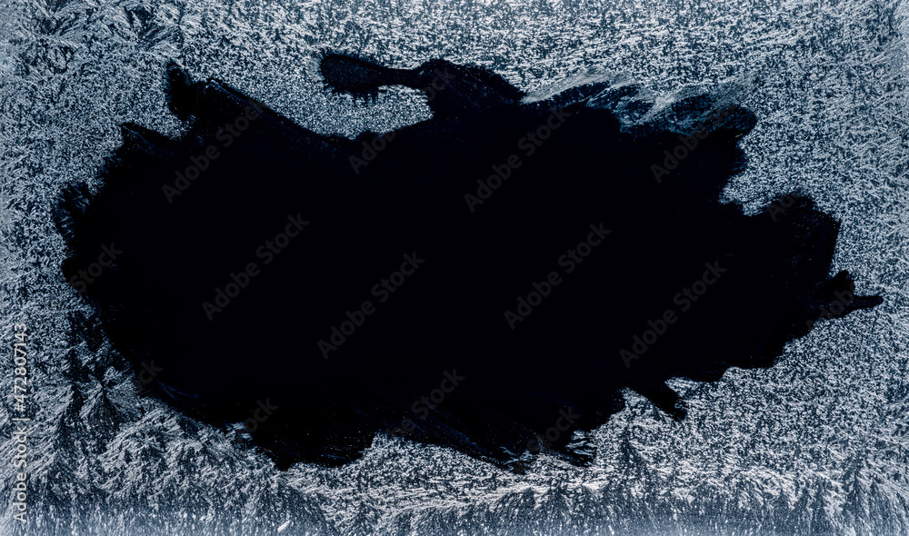 Frost patterns on frozen winter window as a symbol of Christmas wonder. Christmas or New year background.