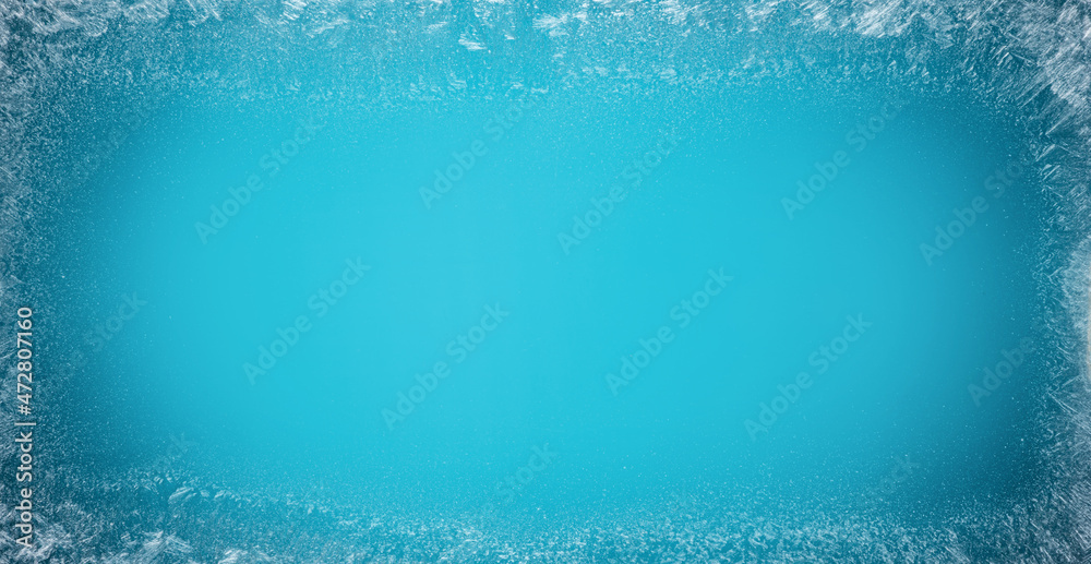 Frost patterns on frozen winter window as a symbol of Christmas wonder. Christmas or New year background.