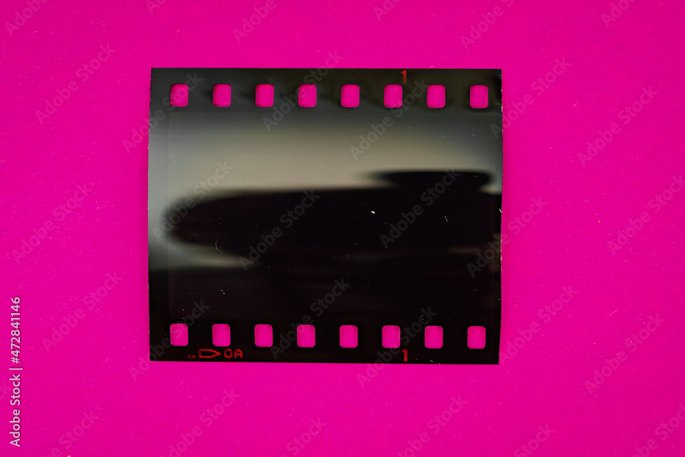 macro photo of underexposed 35mm dia filmstrip slide on pink paper background, nice photo placeholder.