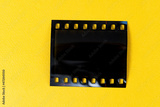 single underexposed dia positive 35mm film frame piece on yellow background. retro photo placeholder for your poster idea.