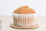 Close-up of homemade Banana cupcake isolated on wooden background. Front view composition.