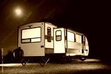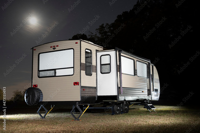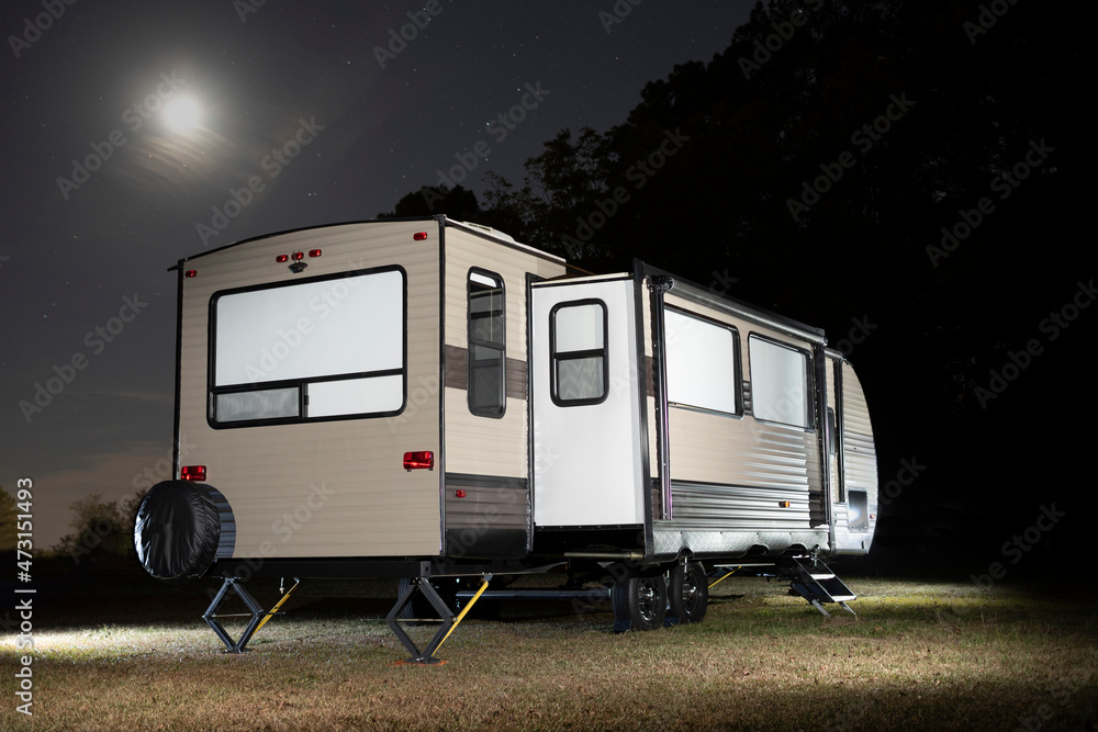 Camping trailer with slide out and moon above