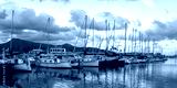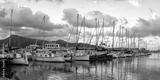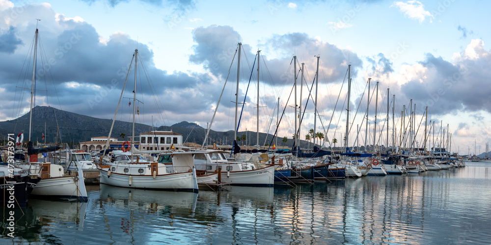 Port de Pollenca marina with sailing boats sailboats on Mallorca travel traveling holidays vacation panorama in Spain