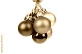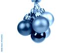 A bunch of Christmas balls on ribbons.