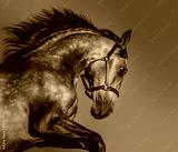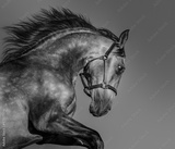 Black and white Andalusian horse in motion.