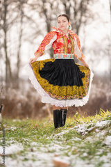Young beautiful slovak woman in traditional dress. Slovak folklore
