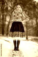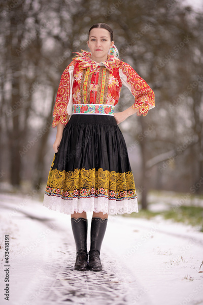 Young beautiful slovak woman in traditional dress. Slovak folklore