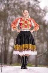 Young beautiful slovak woman in traditional dress. Slovak folklore