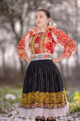 Young beautiful slovak woman in traditional dress. Slovak folklore