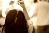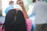 The woman swab COVID-19 testing by ATK or Rapid Antigen Test kit with a cotton nasal swab