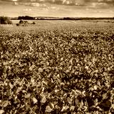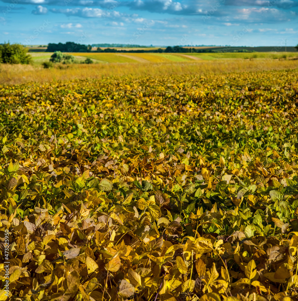 yellowed leaves of soybean and landscapes on the horizon