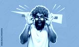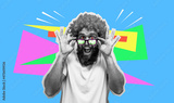 Crazy hipster guy emotions. Collage in magazine style. Discount, sale, season sales. Colorful summer concept. A happy charismatic guy.