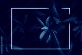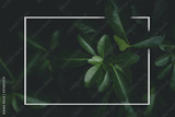 Top view leaves with white paper frame with copy space in dark light, flat lay of green plant with shadow in picture frame,Backdrop of Beautiful Nature concept for Summer or Spring background
